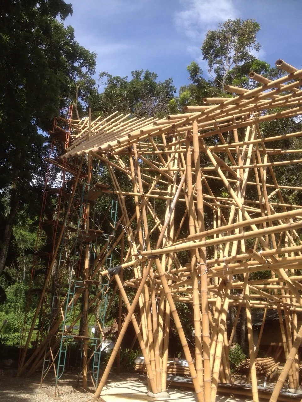 This project involved digital modelling and analysis during the construction stages of the landmark bamboo structure in the heart of the island of Sumatra. This project served as a unique opportunity to integrate digital design tools into a complex natural-material build.