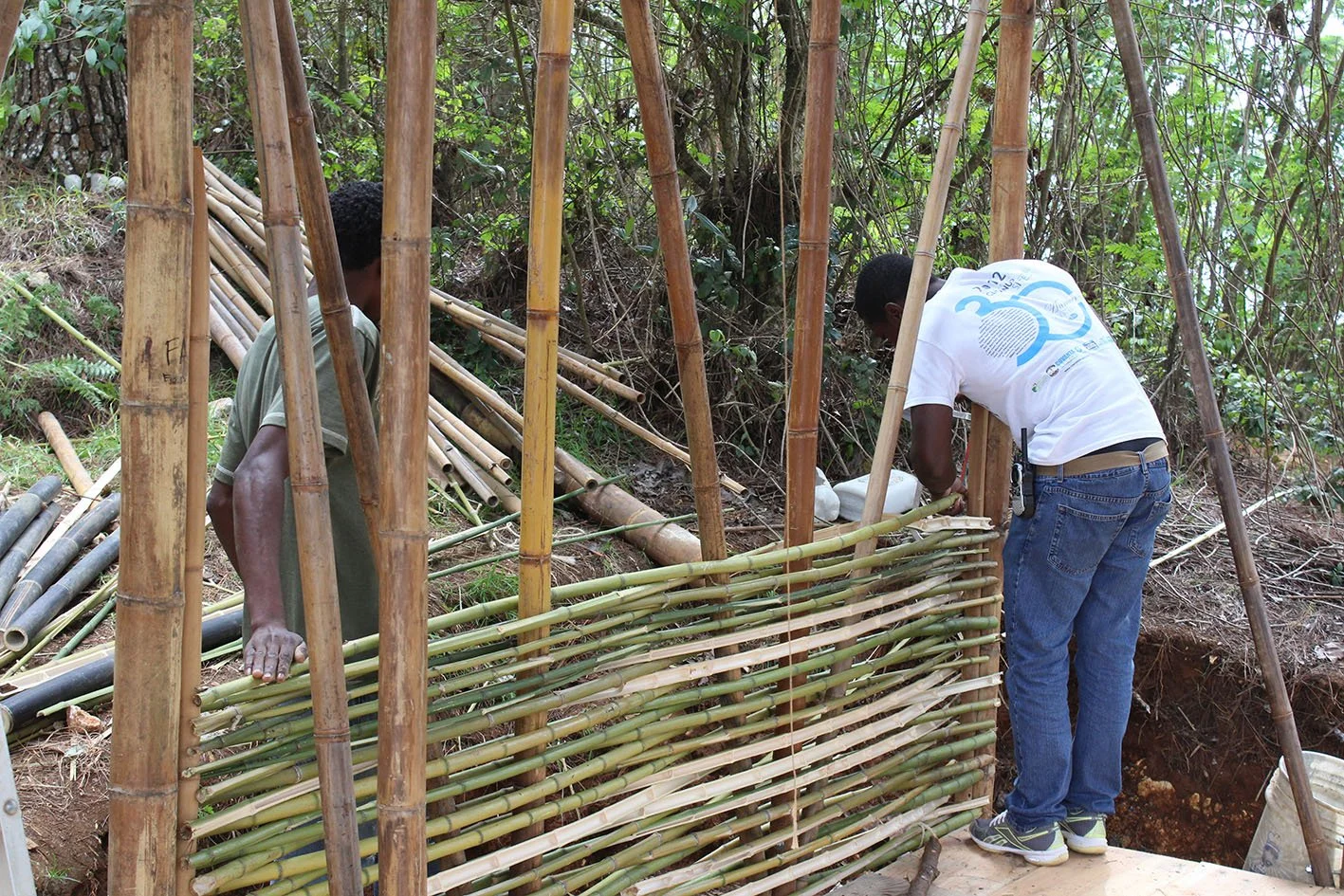 Located at the Wynne Farm in Kenscoff, Haiti, this project is a prototypical bamboo structure, which served as a first step towards a bamboo core house project.